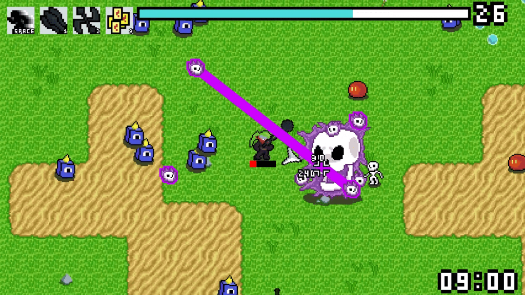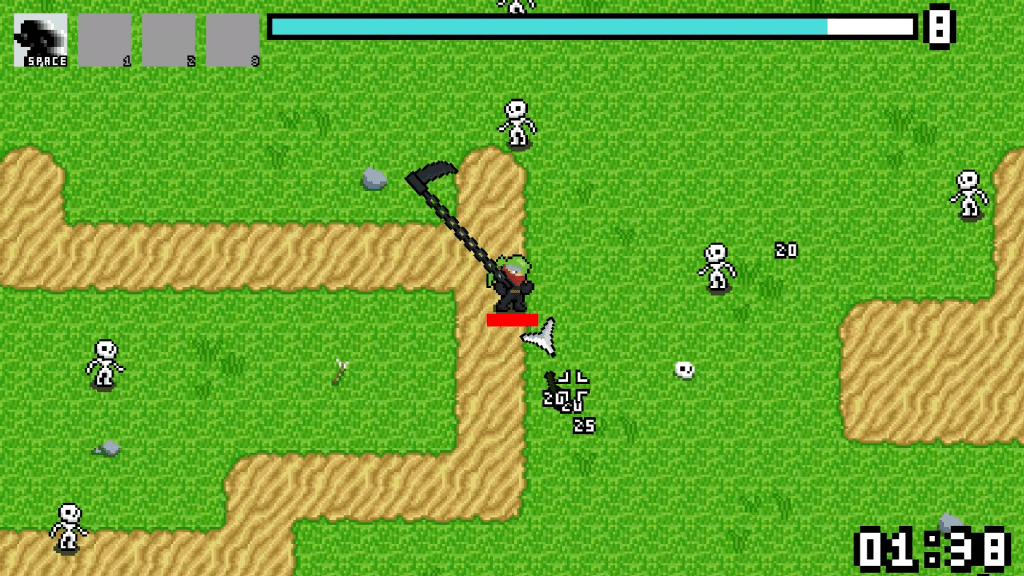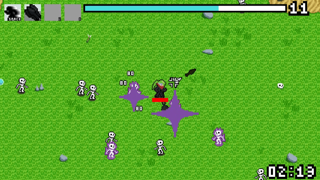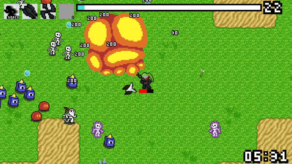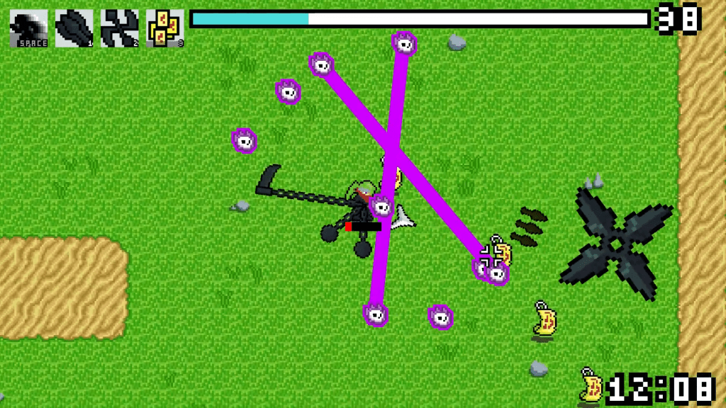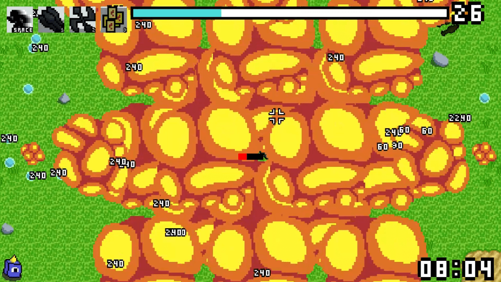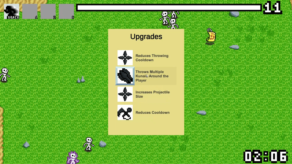 A 2D roguelike in the style of Vampire Survivors. Features an upgrade and inventory system to manage multiple timers with 4 weapons and 3 unlockable active abilities. Also has a robust enemy wave system developed by another collaborator.