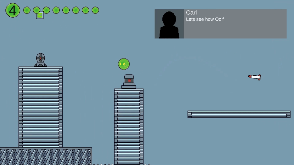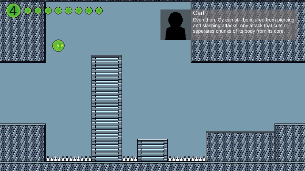 A 2D platformer featuring a unique movement system, dialogue system, 4 different enemy types, and a multi-phase boss. All sound files were taken from zatsplat.com.